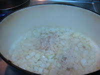 I started out by crisping up the pancetta in my dutch oven. I removed them and let them drain on a paper towel while I added a chopped onion and 3 chopped cloves of garlic.